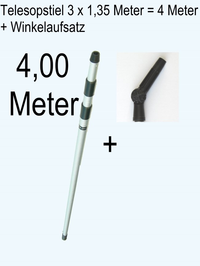 - Teleskopstiel mit flexibler Länge von 1,40 Meter bis 4,00 Meter.