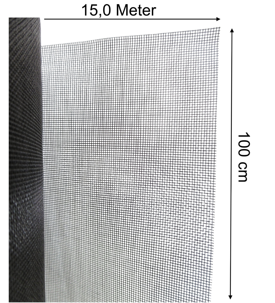 15 m lang x 1,0 m breit = 15 m² hochwertiges Fliegennetz Fliegengitter Mückenschutz mit einer Maschenweite von nur 1,0mm.