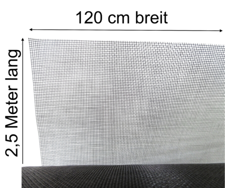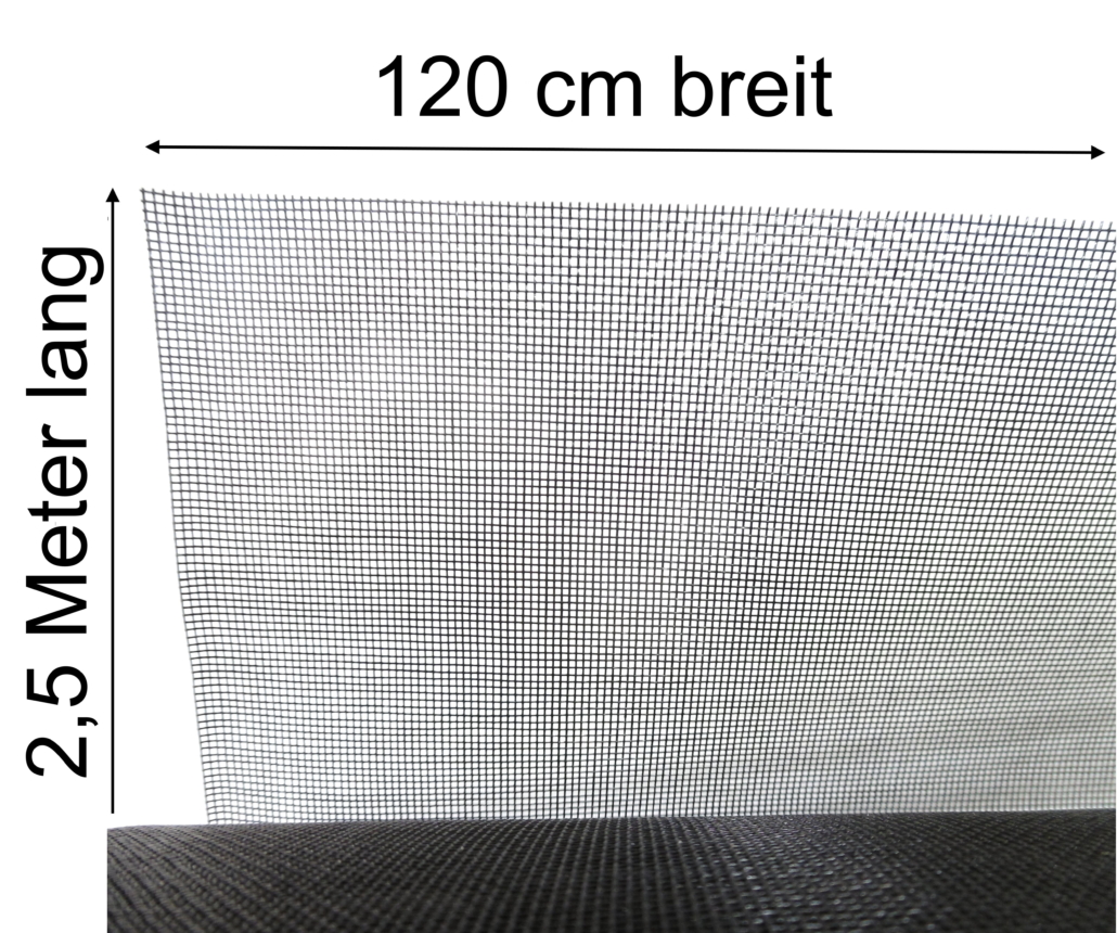 2,5 m lang x 1,2 m breit = 3,0 m². Hochwertiges Fliegennetz Fliegengitter mit einer Maschenweite von nur 1,0mm Als Meterware für günstigen Selbstbau von Fliegen- und Mückenschutz für Wohnung, Büro etc.