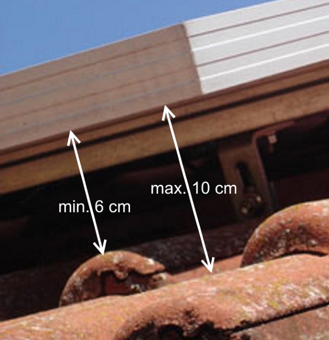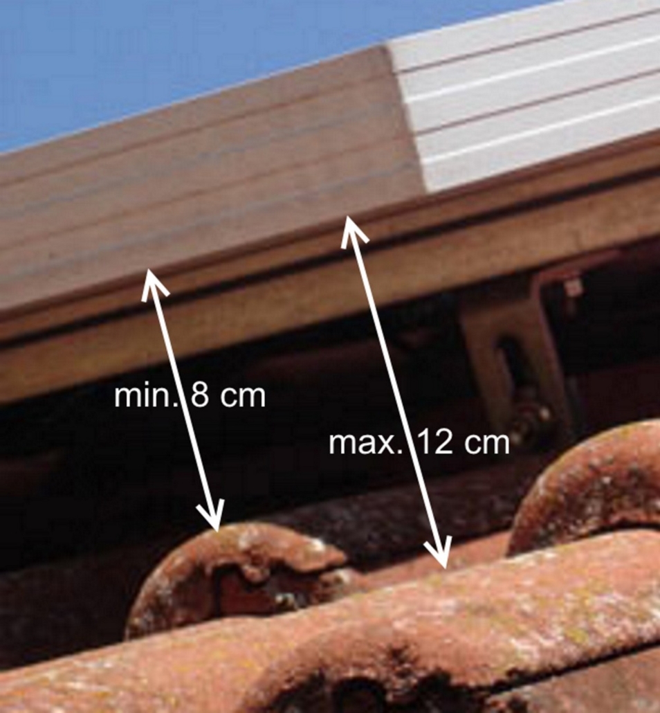 Die Schutzbürsten mit dem Durchmesser von 15 cm sind optimal bei einem Abstand der Dacheindeckung zur Unterkanten der Solarpaneele von 8 cm bis 12 cm.