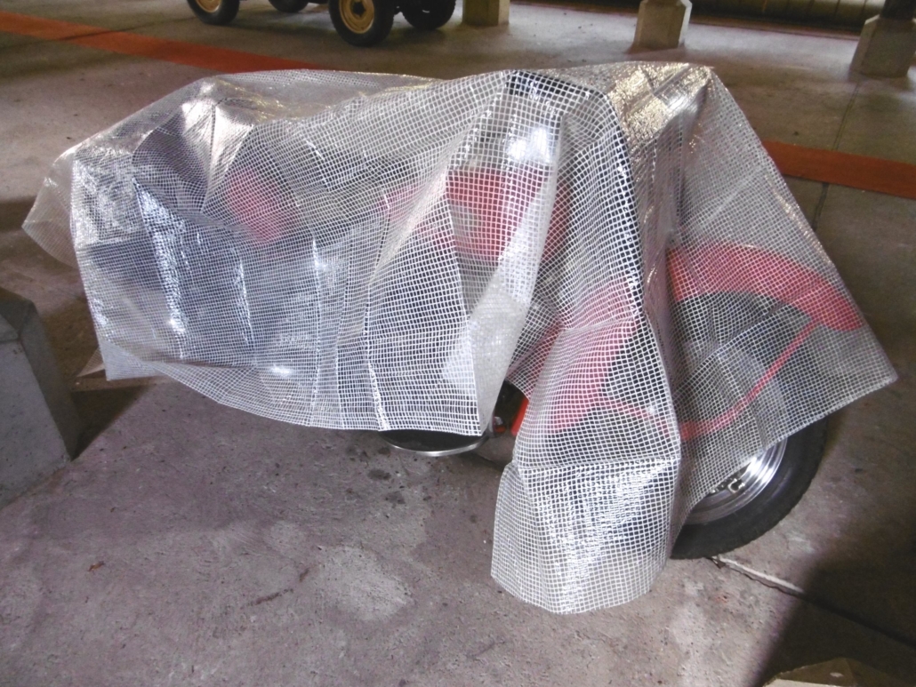 Gitterfolie als Abdeckung für Motorrad