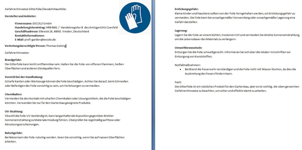 Technische Angaben Gitterfolie von Profi Garden