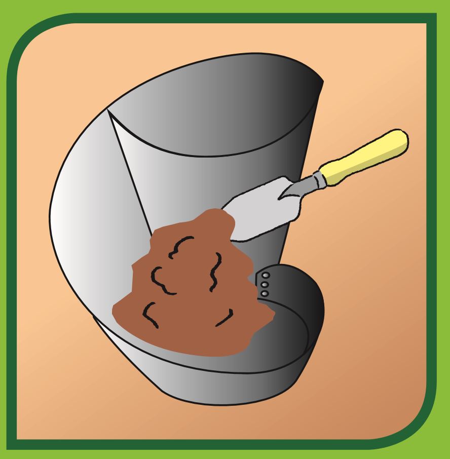 Kräuterspirale wird mit Erde befüllt.