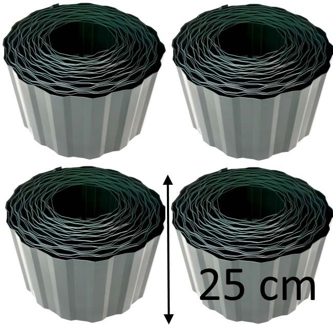 - Gesamtlänge der Rasenkante: 4 Rollen je 9 Meter.