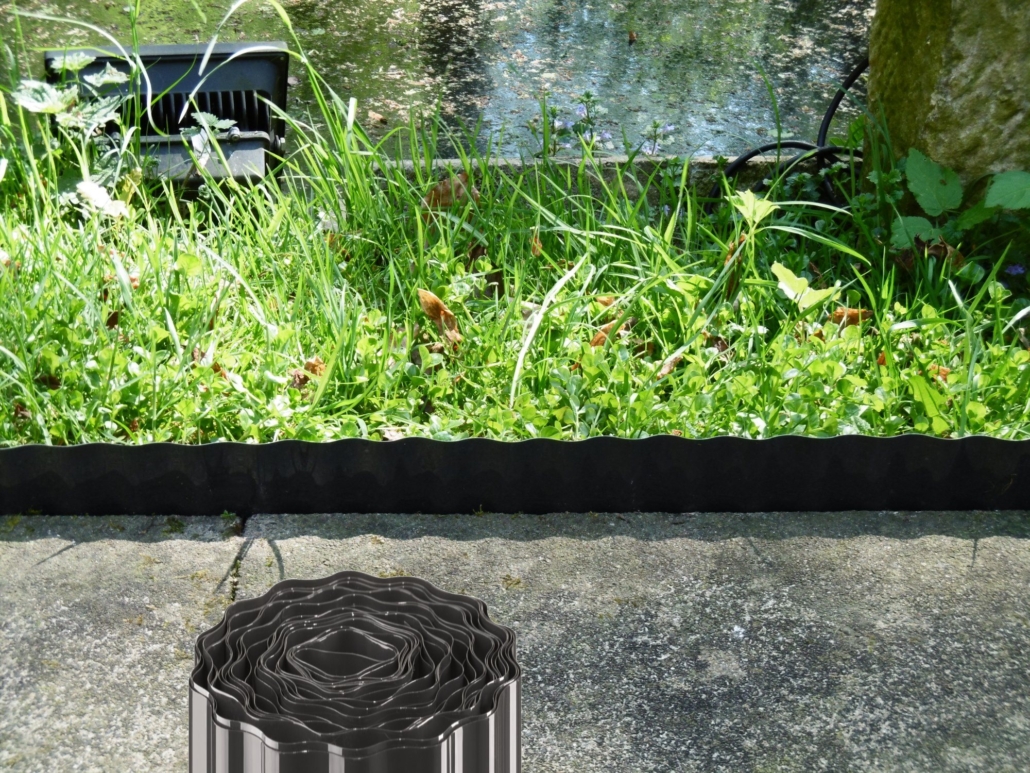 - Gesamtlänge der Rasenkante: 9 Meter.