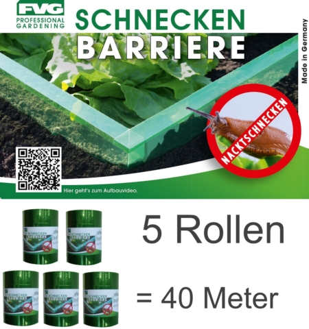 5 Rollen Schneckenbarriere 40 Meter lang, 20 cm hoch.
