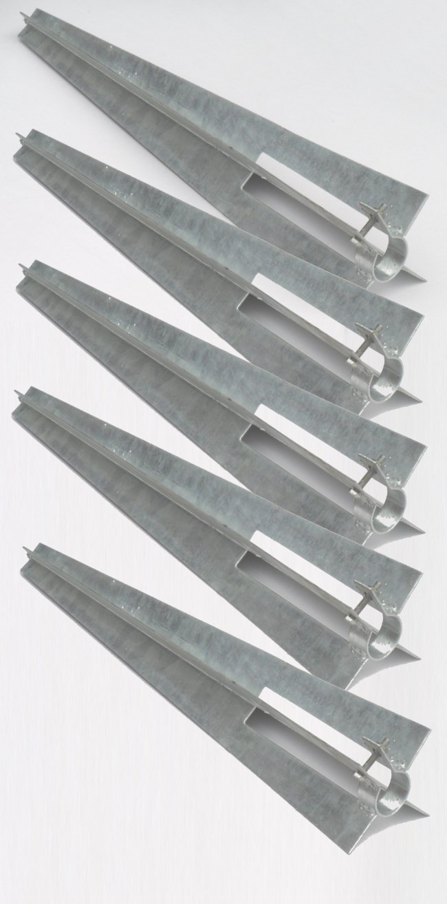 5 x Feuerverzinkte Einschlaghülse für die schnelle Montage von Zaunpfosten ohne Betonieren, mit Klemmschraube.