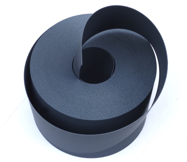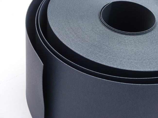Streifen des hochgradig UV beständigen Materials in Steingrau RAL 7030 oben und Anthrazit RAL 7015 unten.