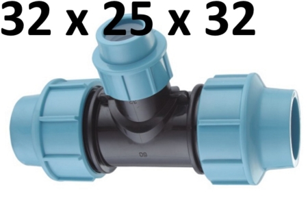 PE Rohr Reduzier T-Stück Ø 32 mm auf Ø 25 mm aus PPfür Rohre aus PE 80, PE 100 nach DIN EN 12201