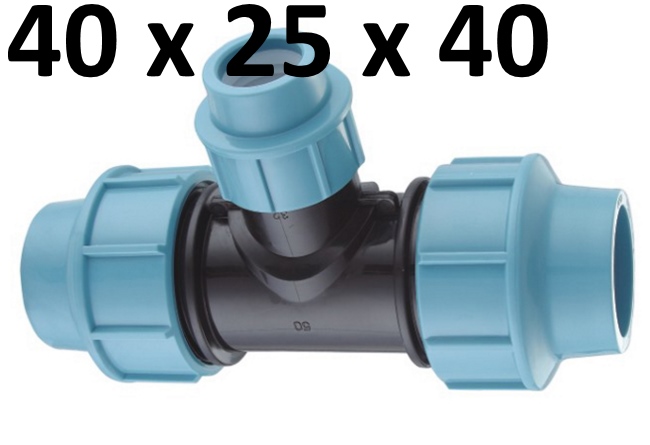 PE Rohr Reduzier T-Stück Ø 40 mm auf Ø 25 mm aus PPfür Rohre aus PE 80, PE 100 nach DIN EN 12201