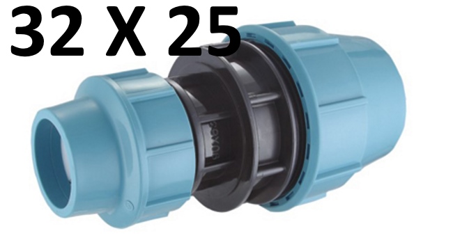 PE Rohr Reduzier-Kupplung aus PPØ 32 mm auf Ø 25 mmfür Rohre aus PE 80, PE 100 nach DIN EN 12201