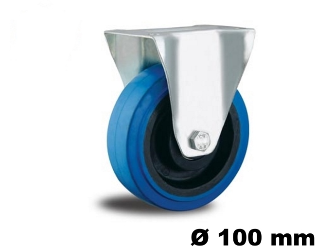 Transportgeräte-Rolle Ø 100 mm mit Rad aus Nylon und Bereifung aus Elastik (Blue Wheel).