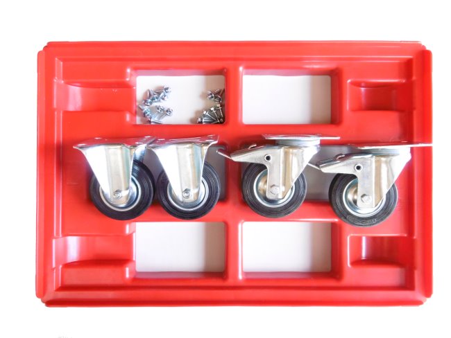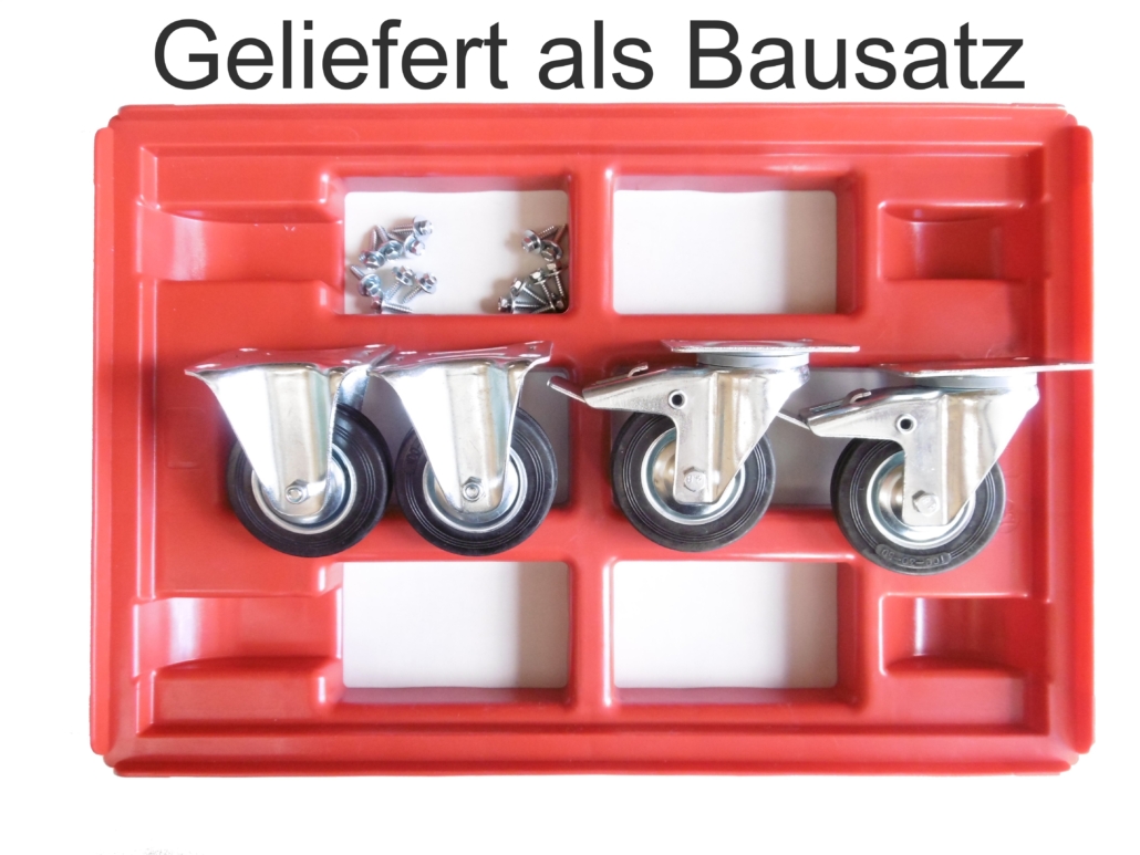 2 Lenkrollen mit Bremse + 2 Bockrollen Der Kistenroller wird als Bausatz geliefert!!!