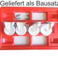 Der Transportroller wird als Bausatz geliefert. Die 4 Rollen müssen noch mit einem 10 er Schlüssel oder besser mit einer Ratsche mit 10 Nuss am Rahmen befestigt werden. Die 16 Schrauben werden mitgeliefert.