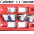 Der Transportroller wird als Bausatz geliefert. Die 4 Rollen müssen noch mit einem 10 er Schlüssel oder besser mit einer Ratsche mit 10 Nuss am Rahmen befestigt werden. Die 16 Schrauben werden mitgeliefert.