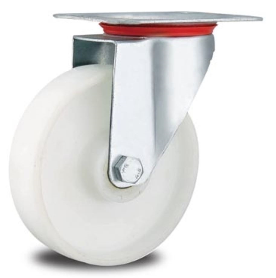 Transportgeräte-rollen Ø 150 mm Spezialausführung für Lebenmittel, Metzgerei, Schlachthof, etc. Material der Lauffläche: Polypropylen